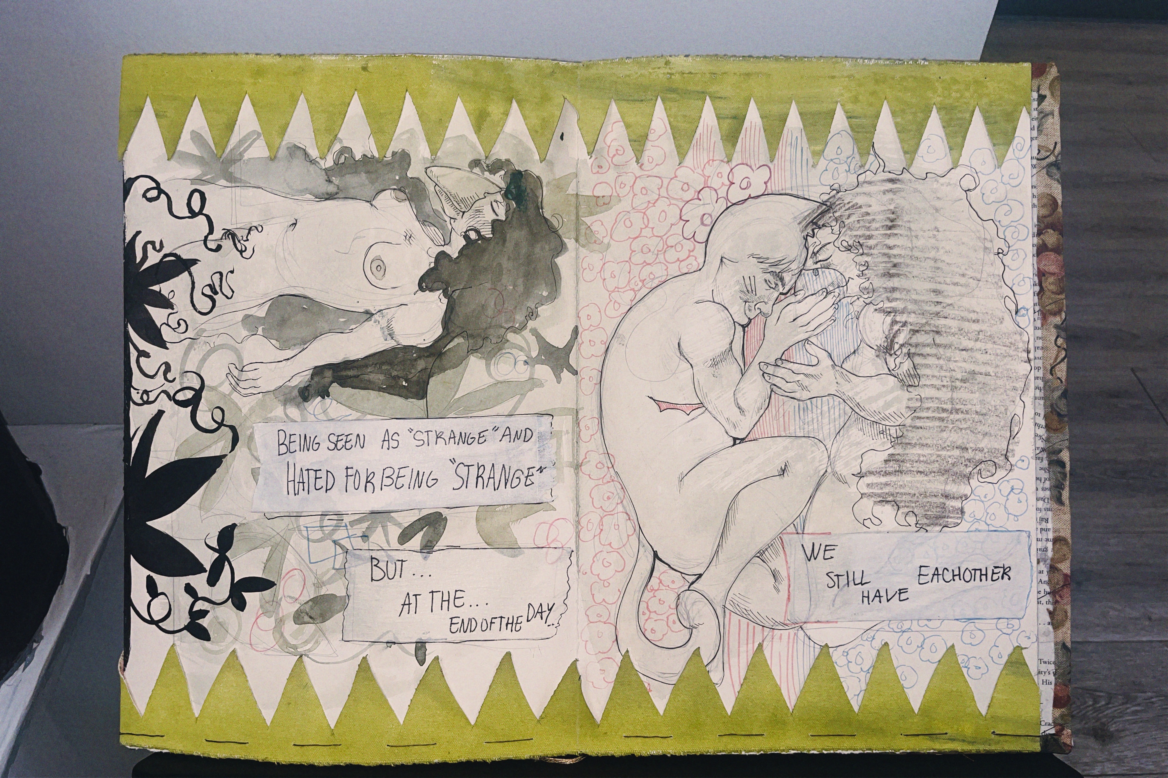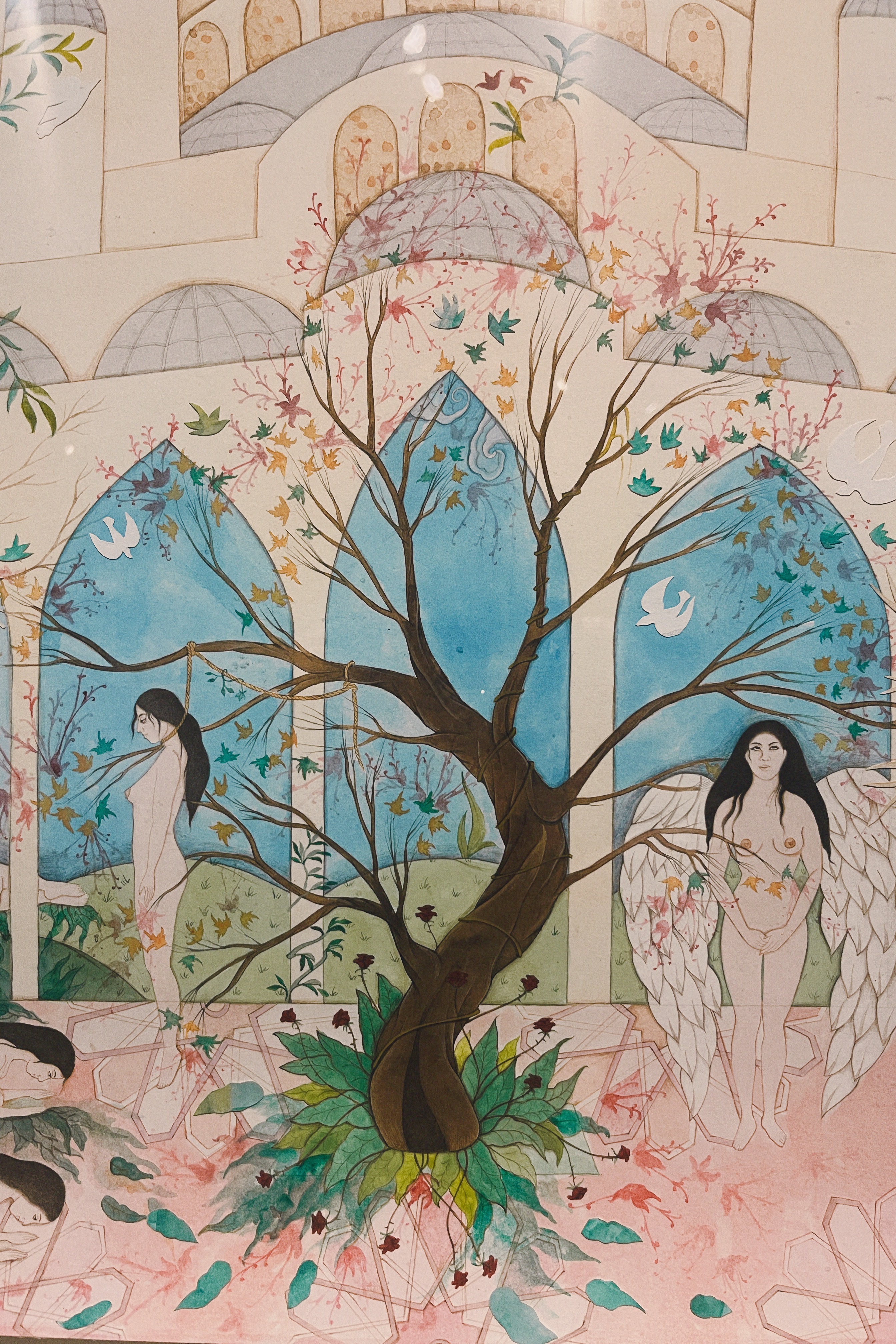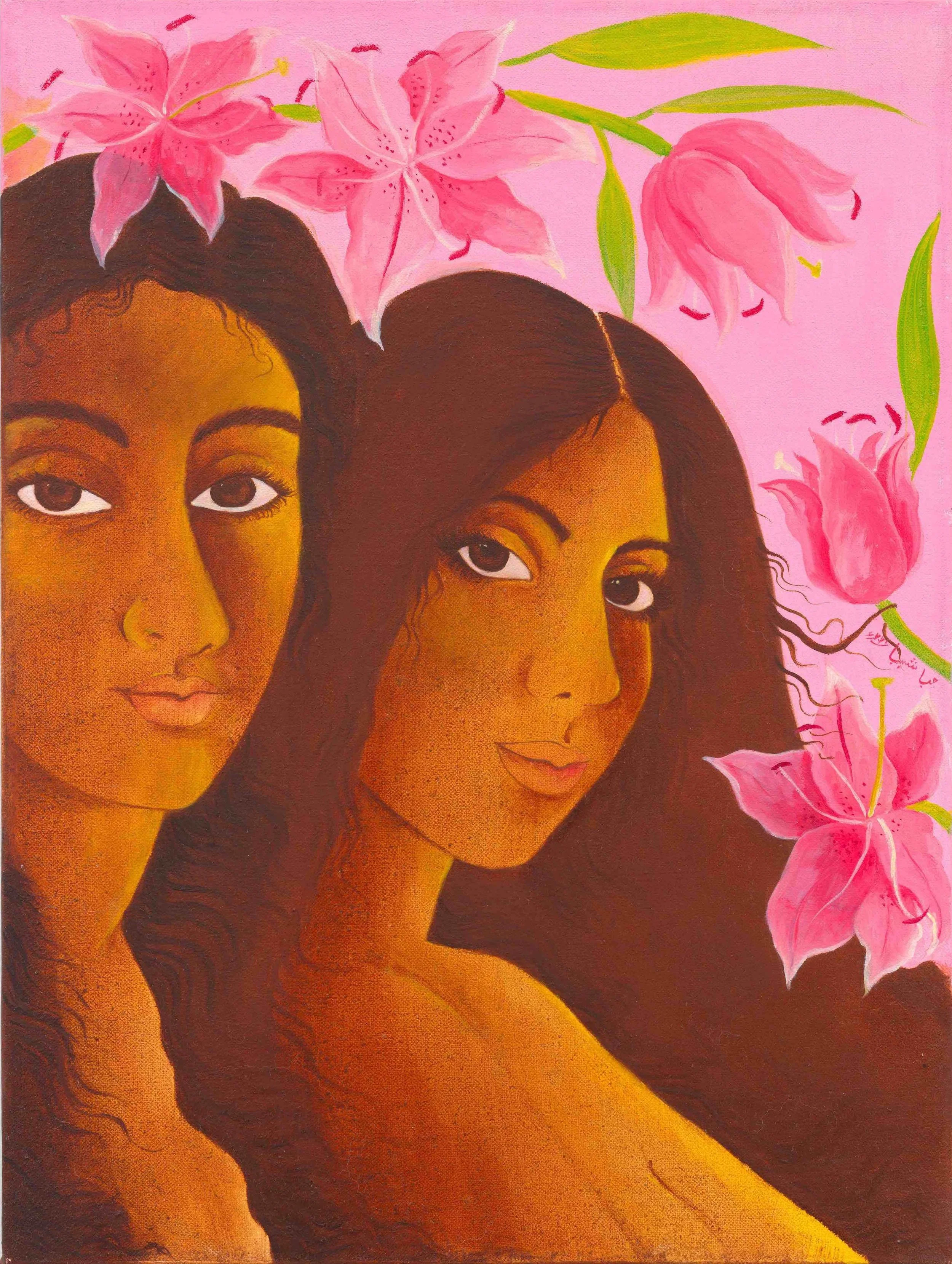 Hiba Schabaz is an artist with pieces that connected with me. I feel grateful to have seen such beautiful floral imagery, story telling, and intimate scenes as I did my research for this section. Since I took most of these photos in person there's a bit of a mess with dates and names. Her website guided me to fill in as much missing info as I could…I recommend you check out her website in general, I am truly in love with her pieces.